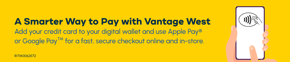 Vantage West consumer credit and debit cards, as well as business credit and debit cards, are eligible for mobile wallets. HELOC Visa cards are not eligible.