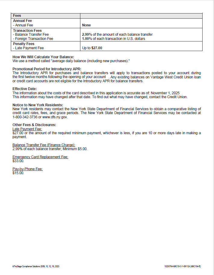 3Card type and APR are based on creditworthiness. Platinum Visa introductory rates are 0.00%, for twelve months, for qualifying members. Standard rates for the Platinum Visa after twelve month introductory period range from 9.49% APR to 25.49% APR. The Signature Rewards Visa has an introductory rate of 0.00%, for twelve months, for qualifying members. Standard rates for the Signature Rewards Visa after twelve month introductory period range from 17.49% APR to 27.49% APR. Rates are variable and are subject to change based on Prime Rate (rates based on Prime Rate as of 11/1/2025). Introductory rate offered only for new Signature Rewards and Platinum credit cards and does not apply to increases, conversions or re-opening of a closed credit card. Introductory APR offer subject to change without notice.