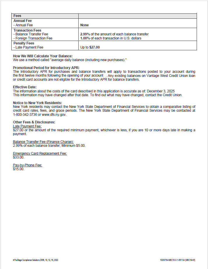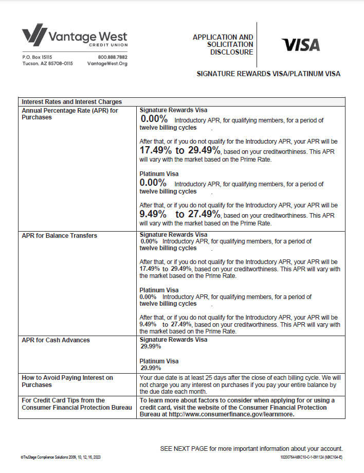 1To qualify and receive the $200.00 Welcome Bonus you must open a Vantage West Signature® Rewards VISA® Credit Card and make qualifying purchases, totaling $2,000 or more posted to your account, within the first 90 days of account opening. (“Purchases” do not include balance transfers, cash advances, interest, unauthorized or fraudulent charges, items returned for credit, or fees of any kind, if applicable.) The $200.00 Welcome Bonus will be awarded in the form of 20,000 Reward points, which can be redeemed for $200.00 cashback. Offer valid for new qualifying Vantage West Signature® Rewards VISA® Credit Cards only and does not apply to increases, conversions, or re-opening of a closed credit card. Members with an existing Vantage West Signature® Rewards VISA® Credit Card are not eligible for the bonus. Certain restrictions may apply.